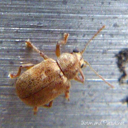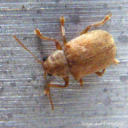 体長3mm程度の小型ハムシ。全身に毛が生えている。