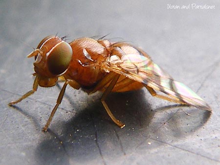 このハエを調べていた時、非常によく似たハエ(和名あり)をネットで見つけ、同定の参考にしようと和名を調べたものの図鑑では行き当たらず、ハエに詳しい「ヘキサポーダリサーチ」のサイトでお話を伺いました。