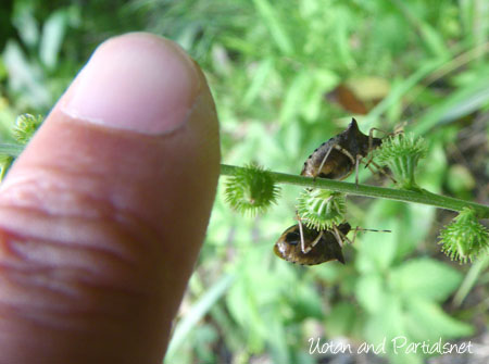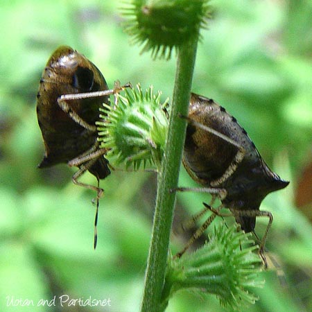 体長8mm前後、両肩?が尖って張り出しているのが特徴的。多分キンミズヒキ(確率9割)に集まっているところ。