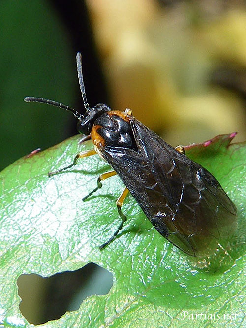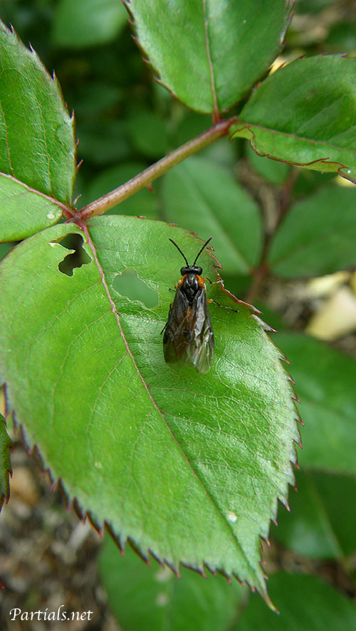 成虫はバラの若い茎に卵を産みつけ、幼虫はバラの葉を食べる