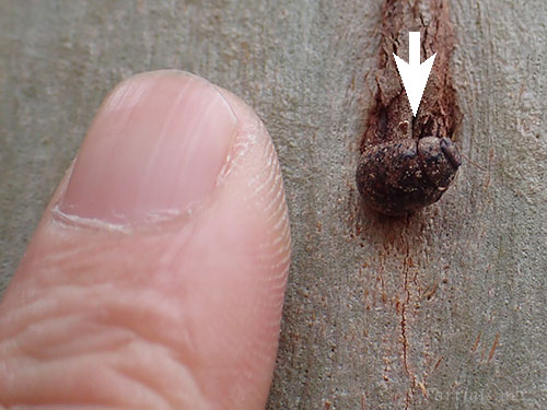 体長5mm程。ユーカリのひこばえ若葉や幹で多数見られた