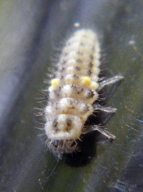 ウドンコ病菌を食べる食菌性。成虫が2-3ミリだけに幼虫もとても小さい。