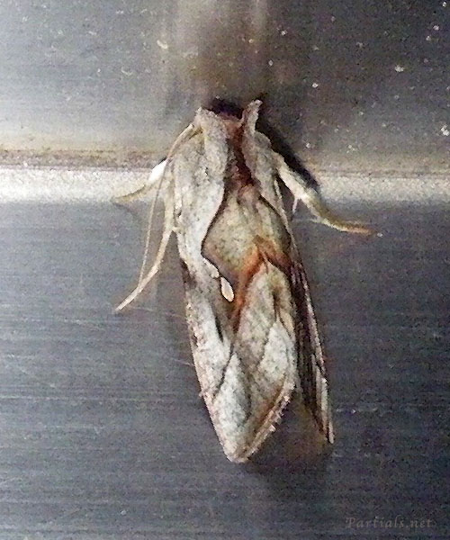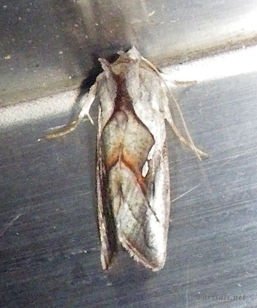 確かにキンウワバ亜科らしい金属光沢のある紋(銀色)はあるが、ぱっと見だけだとキンウワバというよりシャチホコガ科に見えた