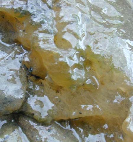 寒天質。内側のほうは生きてるんだろうか。これは動物でブツブツの1つ1つが小さな生き物が集まって群体になる。日本にいるコケムシの仲間には、他にも海産、汽水産のものがいるそうだ。