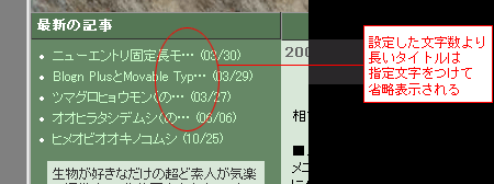 メニュー部に出す「最新の記事」のタイトルが折り返されるのがイヤで、希望する文字数にできるように作ってもらいました。