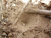 ウスバカゲロウの幼虫の巣 アリジゴク 兵庫 2005年6月