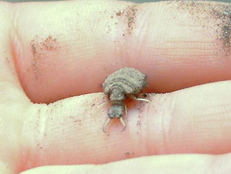 アリジゴクの中の幼虫本体。手は子供の手 2005年6月